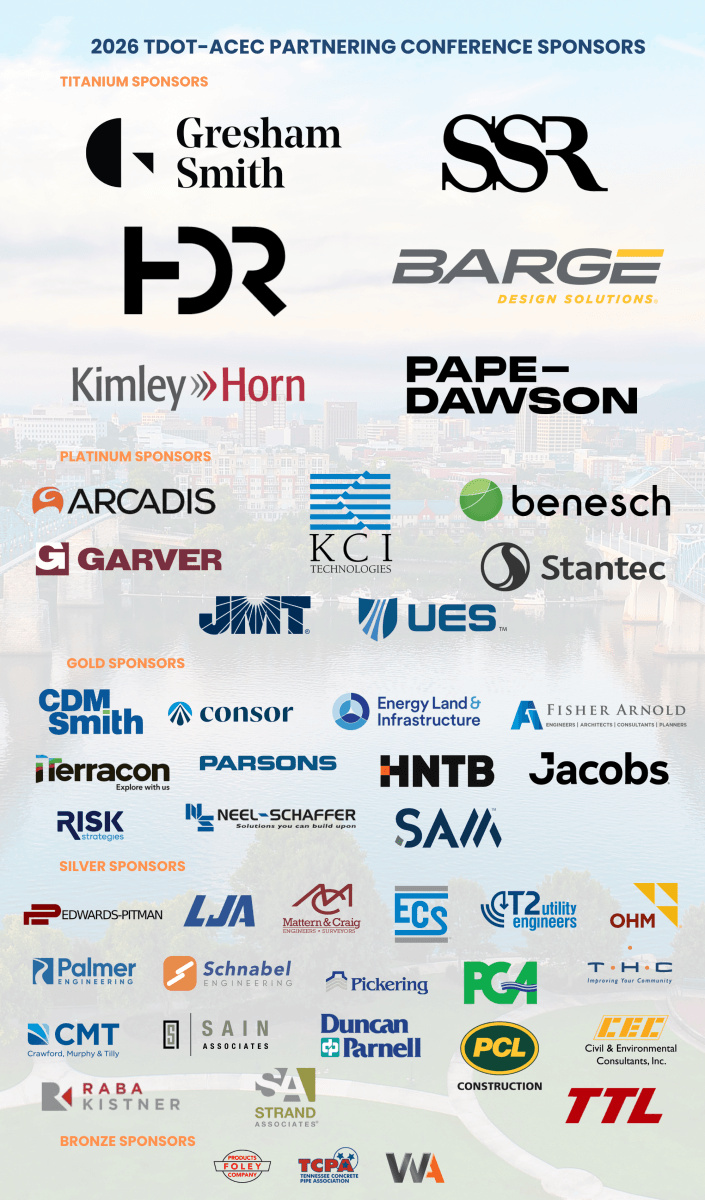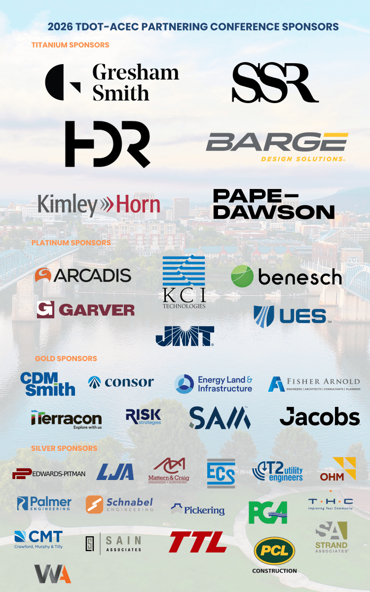 The 2026 ACEC–TDOT Partnering Conference is Tennessee’s premier gathering for transportation professionals committed to delivering smarter, stronger, and more innovative infrastructure solutions.